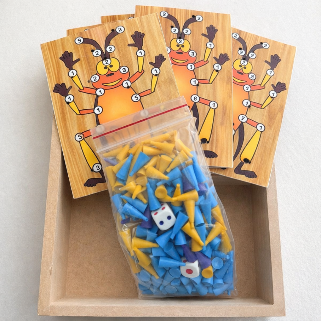 El jugador lanza cinco dados y solo el número 1 es válido para avanzar. Cada parte del tablero indica cuántos resultados “1” se necesitan para colocar una pieza. Si no aparece ningún 1, el jugador pierde el turno y aplica la penalidad acordada. Si obtiene varios 1, puede seguir lanzando los dados restantes hasta que falle. Gana quien complete primero la cucaracha.