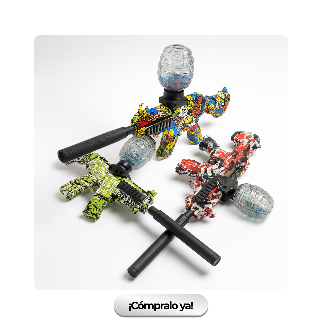 Fabricado en plástico ABS de alta resistencia, con un diseño colorido tipo graffiti y un sistema de disparo automático que lanza bolitas de agua biodegradables de 7-8 mm. Perfecto para jugar al aire libre, practicar puntería y compartir risas en familia.